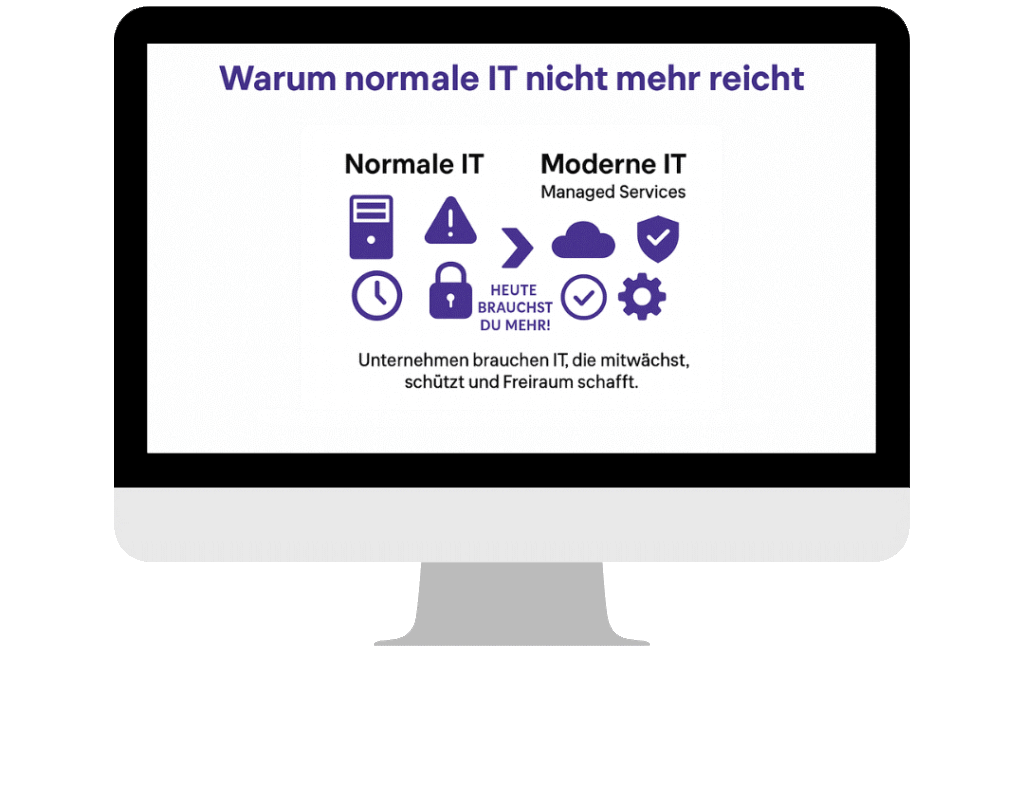 In der digitalen Welt reicht Standard-IT nicht mehr aus. Cyber-Bedrohungen, wachsende Datenmengen und der Druck auf Effizienz verlangen moderne IT, die flexibel, sicher und zukunftsorientiert ist – damit du dich voll auf dein Kerngeschäft konzentrieren kannst.